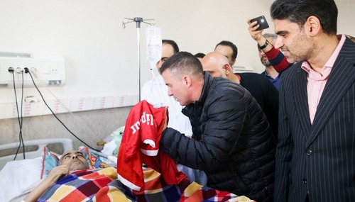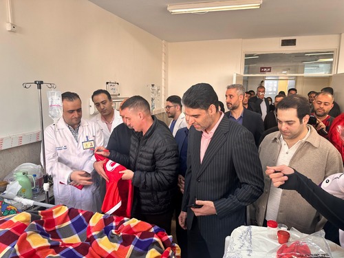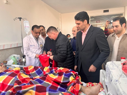 سرمربی پرسپولیس در بیمارستان آیت الله طالقانی؛ دیداری صمیمانه با بیماران