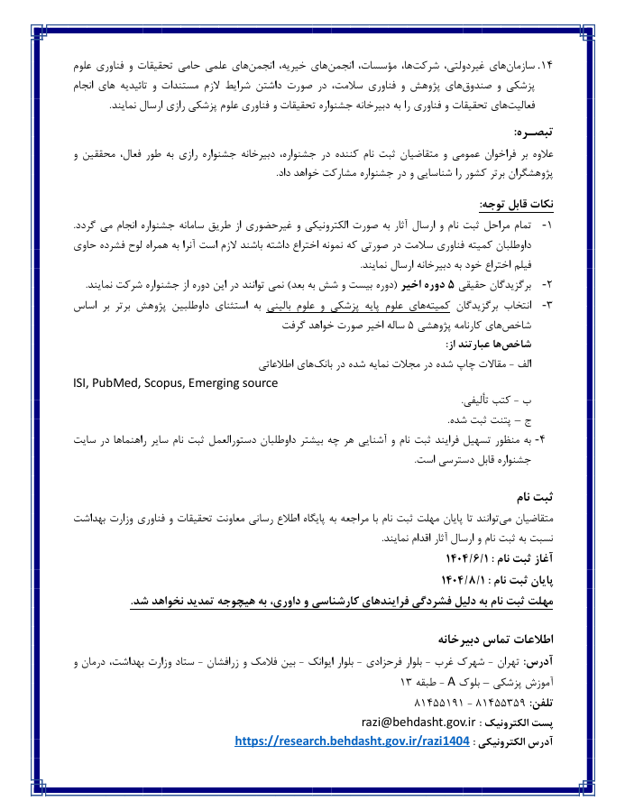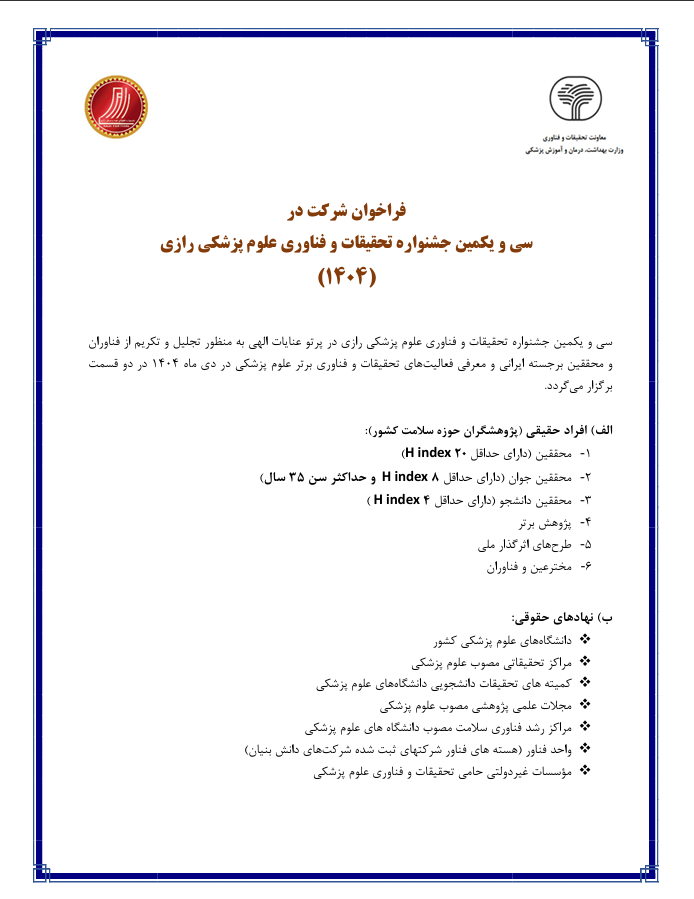 فراخون سی و یکمین جشنواره تحقیقات و فناوری علوم پزشکی رازی